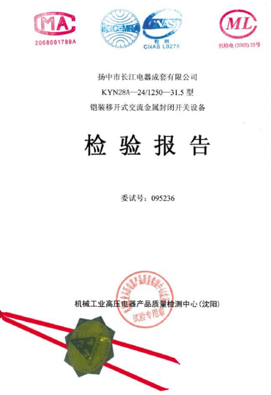 KYN28A鎧裝移開式交流金屬封閉開關設備檢驗報告