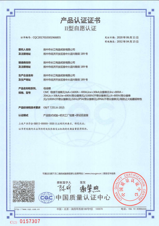 母線槽CMC-1600A-400A-產(chǎn)品認(rèn)證證書